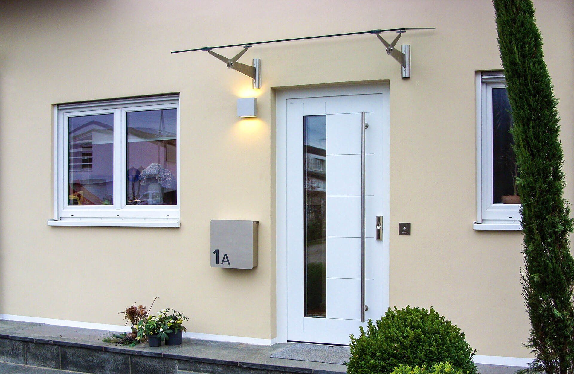 ein Vordach aus hochwertigem Aluminium. Heller Eingangsbereich durch integrierte LED Leuchte.