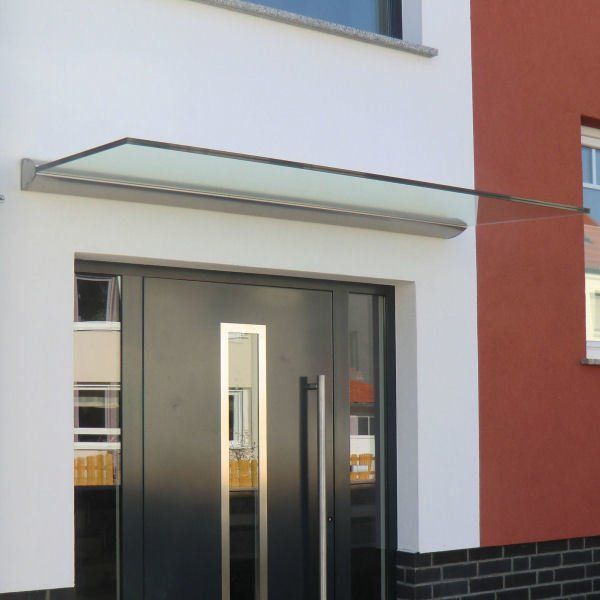 Dieses Glasvordach wirkt aufgrund seiner wählbaren Glas- und Befestigungsarten an jeder Fassade individuell. Dabei ist es stets elegant und wirkt aufgrund seiner punktförmigen Befestigung aus hochwertigem Edelstahl leicht und filigran. Das Glasvordach besteht aus 13,14 mm dicken Verbundsicherheitsglas (VSG), wodurch bestmögliche Stabilität gewährleistet wird.
