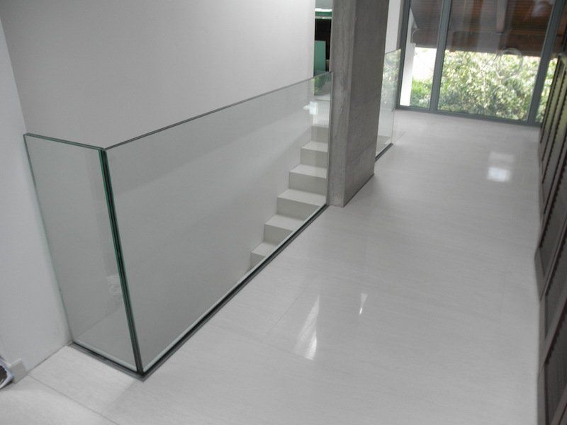 Ganzglasgeländer für Innen und Außen. Bodenmontage Glas, Sicherheitsglas, 17,56 mm stark. Durch die rahmenlose Montage ein echter Hingucker.
